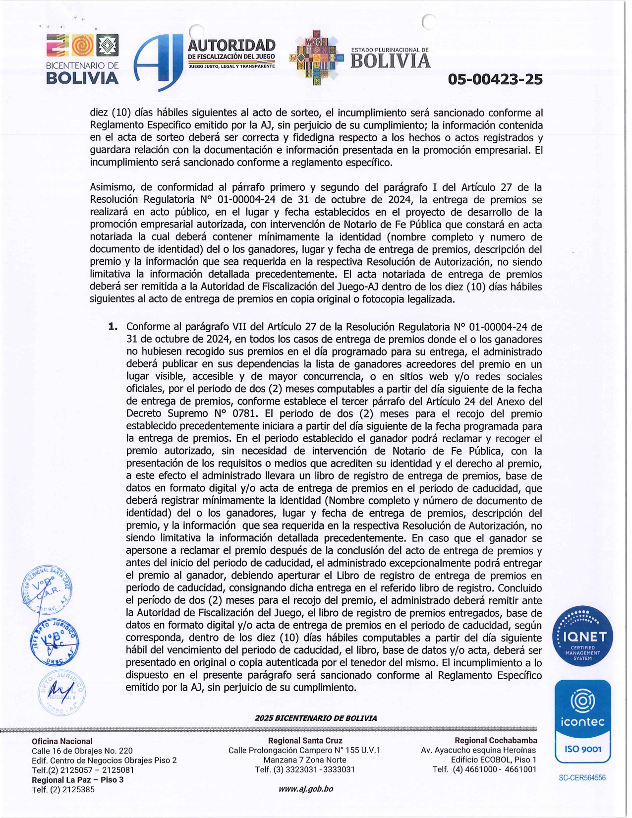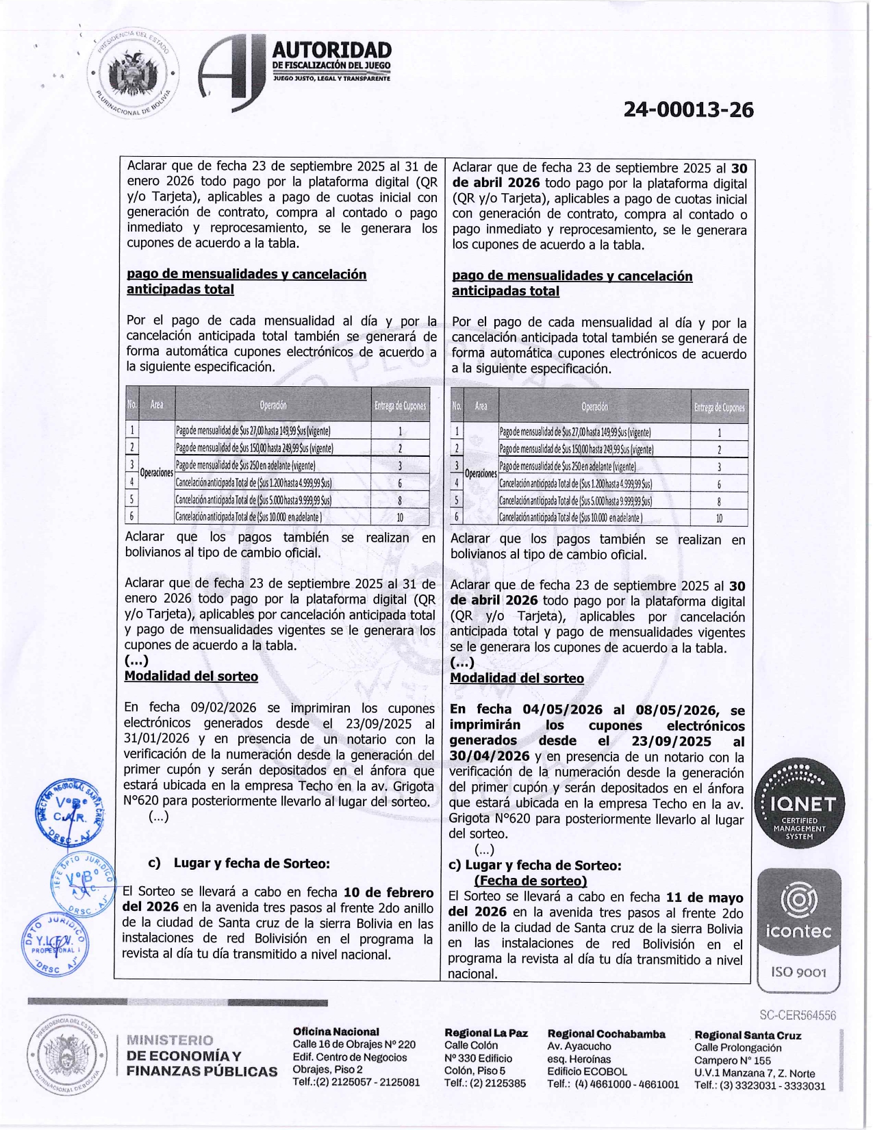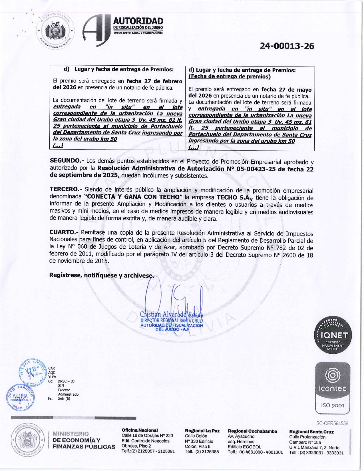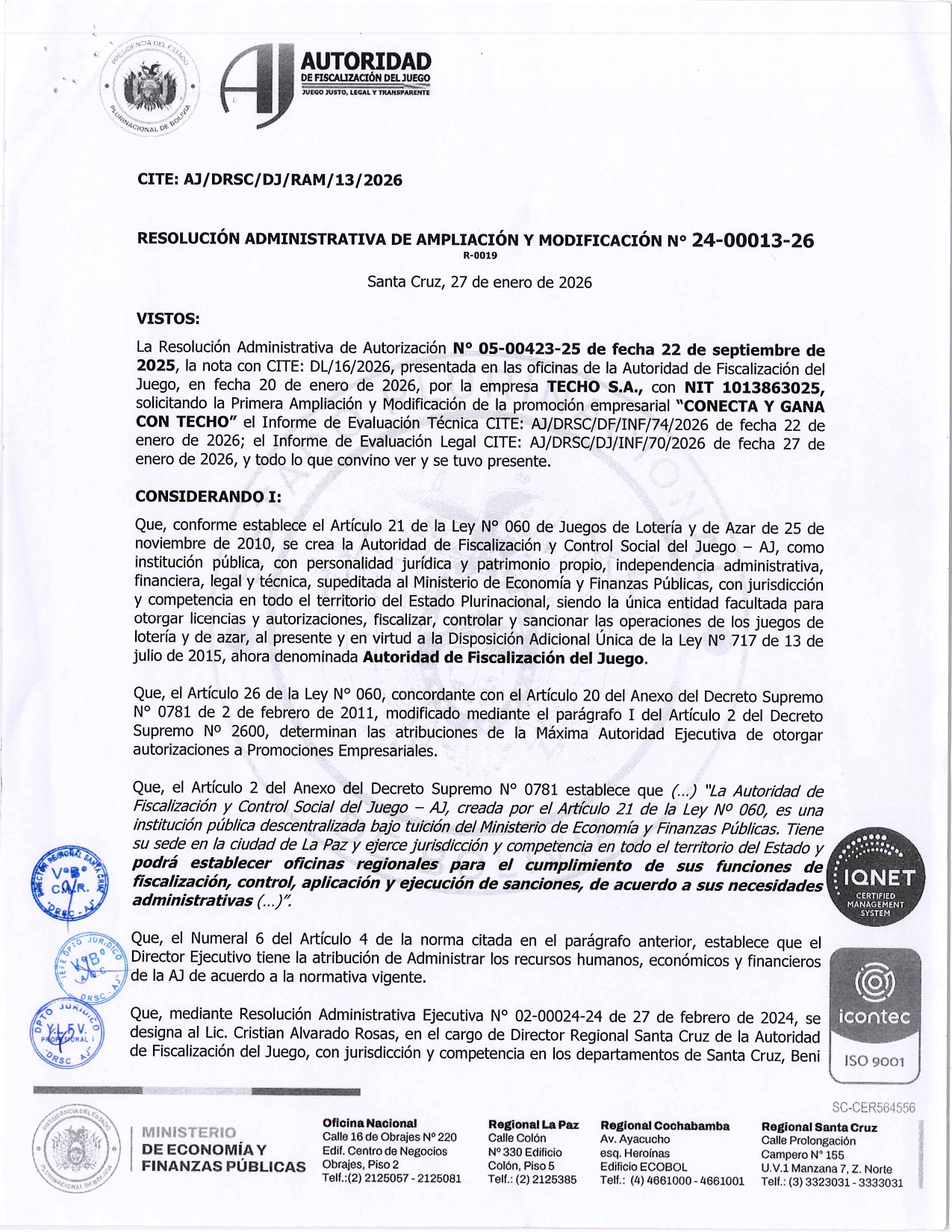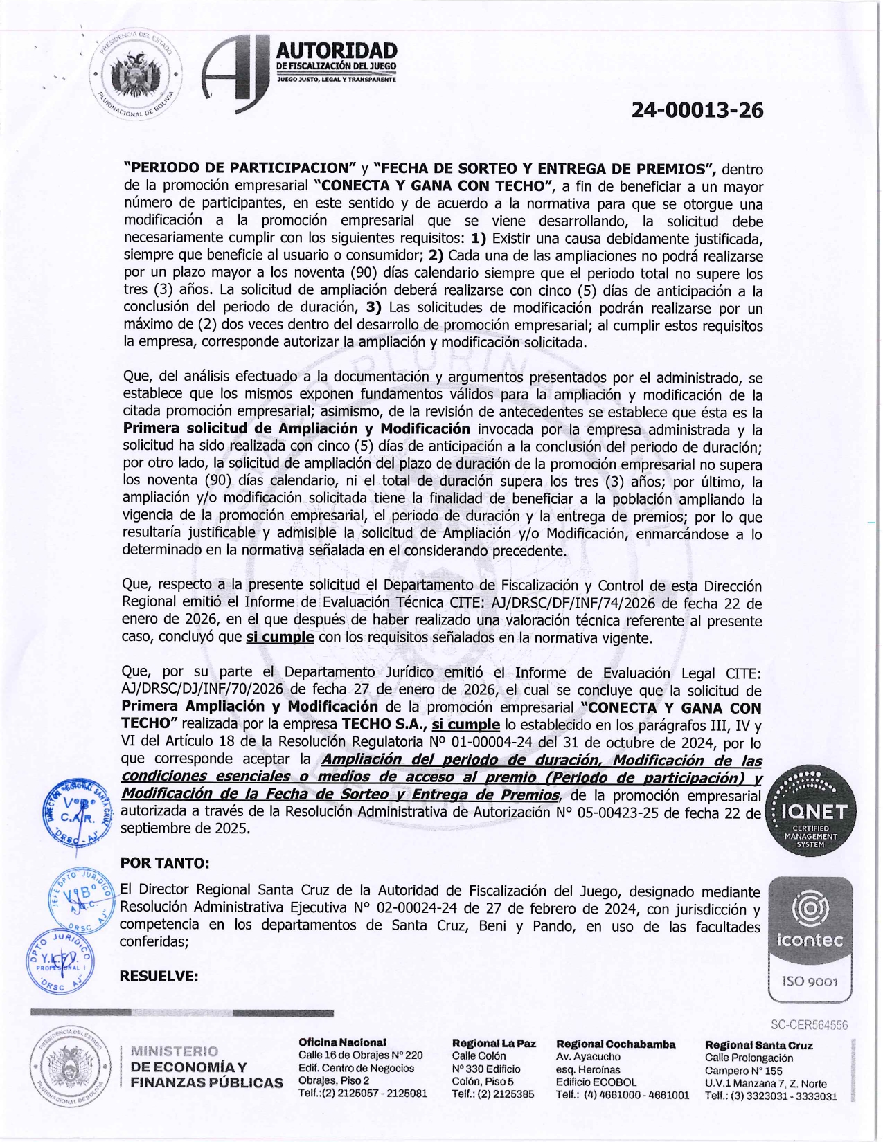 RESOLUCION ADMINISTRATIVA DE AMPLIACION Y MODIFICACION Nº24-00013-26