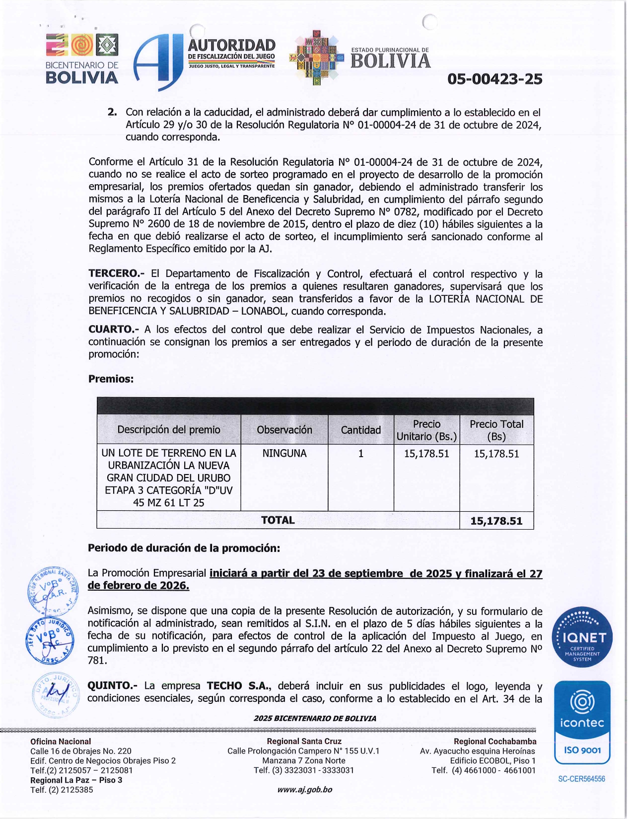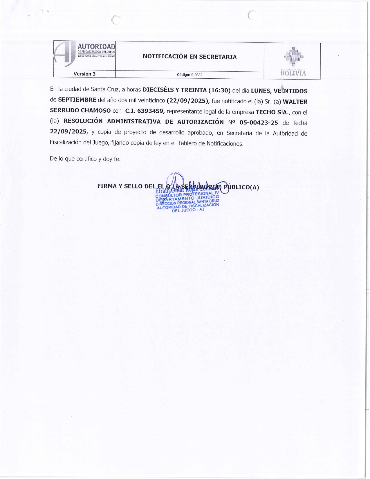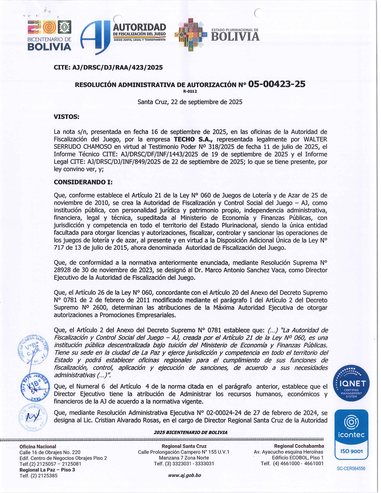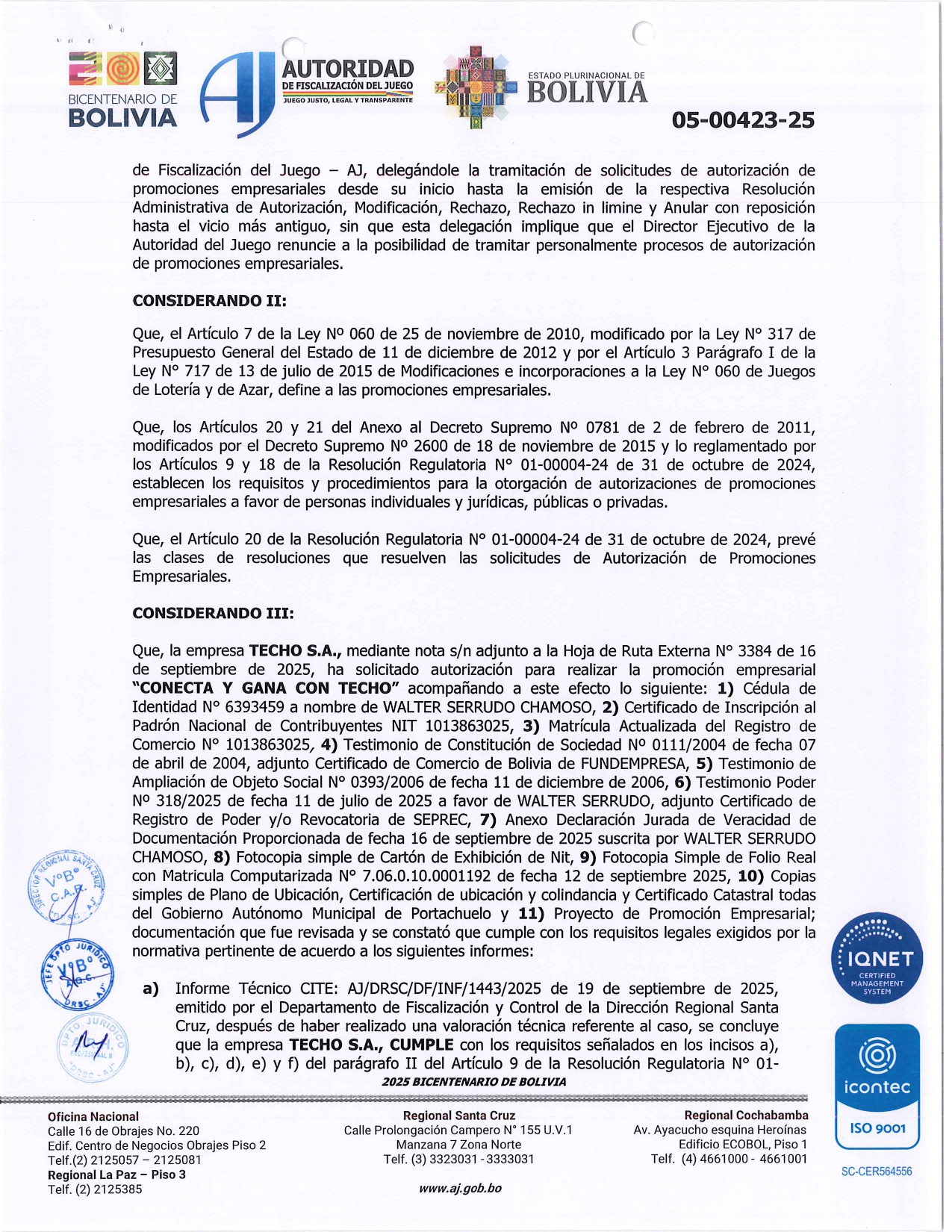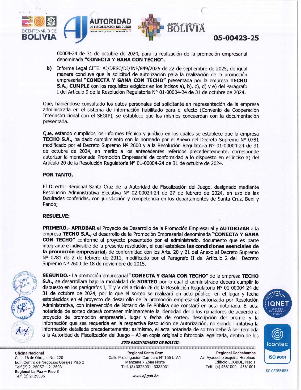 RES. ADM 05-00423-25 - TECHO S.A.